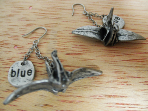 上の画像は昨日作ったばかりの折り鶴ピアスです★