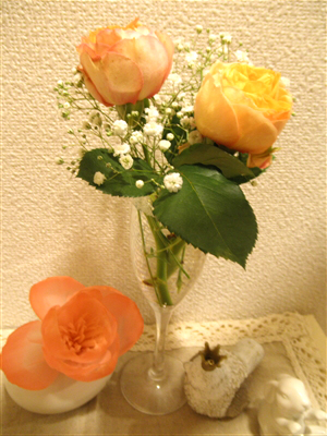 家に帰ってから花瓶なんてしゃれたものないので家中の水入れられそうなもの物色しながら活けてみましたよ(ω´∀`ω)