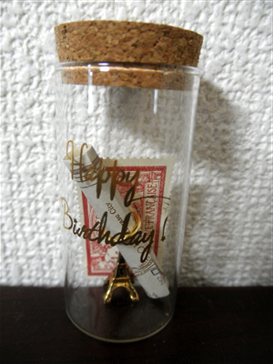 ガラスの小瓶の中に入ったちっさいエッフェル塔がかわゆいです♪