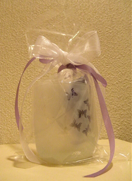 いくつかあるグラスから選んだやつにサンドブラストを施し、リボンや紙などでラッピングするとこまで自分でします。