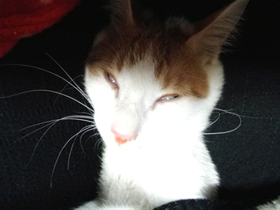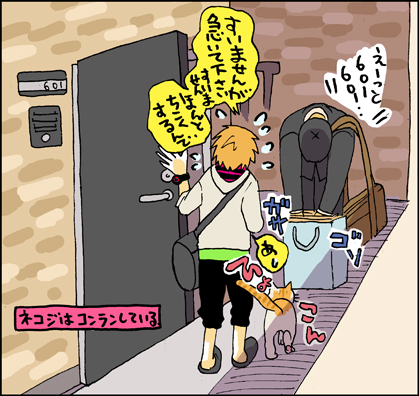 数分後、出かける気配に急にすりすり足にまとわりつくヨリにゃんをかわしつつ玄関ちょっと開けたらコンコンコン!!