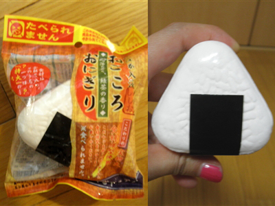 純白のおにぎり型の入浴剤でお湯に入れると中からおにぎりの具のフィギュアが出てきます。