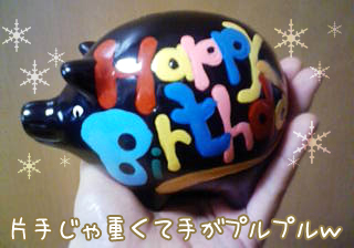 全部10円玉だから大した金額ではないと思うのですがやっぱり満杯になった達成感とずっしり肥えた豚さんの重みは最高です>∀<b