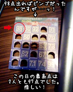 他にも‘採点ビンゴ’っていう採点で獲得した点数で穴を開けるビンゴがありました。