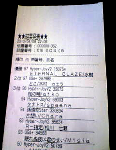 お会計後に採点の点数とか歌った曲とかの結果発表のレシートみたいな紙がもらえるんですね~!