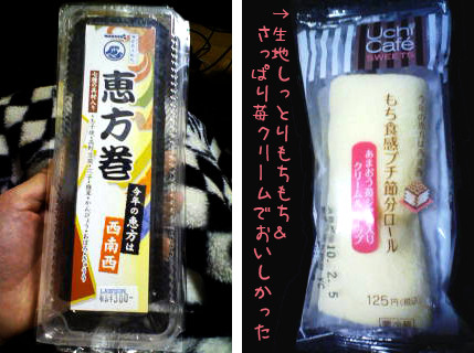 というわけで昨日ははりきってバイト帰り(深夜2時半頃)にコンビニで恵方巻き買って帰ろうとしたら・・・