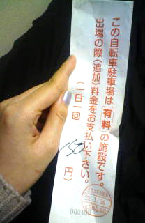 日曜は駐輪場管理のおじさんがいないからタダですが昨日は月曜だからさっそく使用料(150円)払ってくださいよ~的な紙が貼られてました。